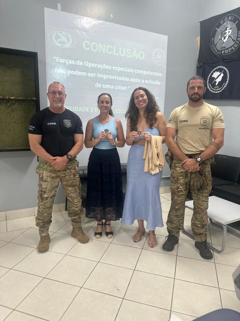 A atividade institucional contou com a presença da Diretora do Gabinete de Relações Institucionais e Comunicação Social, Delegada Eliana Parahyba Lopes, reforçando a importância da integração entre a Polícia Civil e a comunidade acadêmica na construção de conhecimento aplicado à gestão de crises.