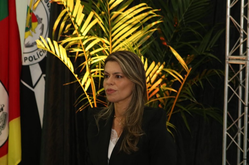 Em sua fala, a Subchefe de Polícia, Delegada Patrícia Tolotti, agradeceu o apoio recebido em sua trajetória e ressaltou a importância deste dia em sua carreira: “Hoje é um dia muito especial, pois assumo a Subchefia da Polícia Civil. Agradeço por ver tantas pessoas incomparáveis que contribuíram para que eu chegasse até aqui. Assim como em nossas batalhas diárias, a luta contra o crime não se vence sozinha. Recordo com muito carinho minha primeira lotação, em Pelotas, Foi ali, nos meus primeiros dias de trabalho, que compreendi a dimensão de pertencer à família Polícia Civil. Aprendi, com uma valorosa equipe — majoritariamente formada por policiais com mais tempo de polícia do que eu tinha de vida — que a chefia precisa ser exercida com humildade e gratidão. Humildade para aprender, independentemente da condição hierárquica ou da formação acadêmica, absorvendo o conhecimento adquirido nas ruas, no atendimento ao público, na rotina policial. Gratidão para reconhecer que cada vivência fortalece nossa resiliência diante dos desafios.”