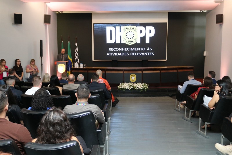 A Polícia Civil, por meio do Departamento Estadual de Homicídios e Proteção à Pessoa (DHPP), realizou nesta quarta-feira (26/11) a solenidade de entrega de homenagens em reconhecimento às atividades consideradas relevantes para o fortalecimento do trabalho do Departamento ao longo do ano. O evento aconteceu na Cidade da Polícia, em Porto Alegre, e reuniu autoridades, profissionais da segurança pública e representantes da sociedade civil.