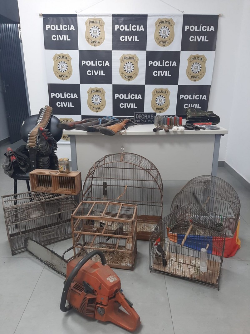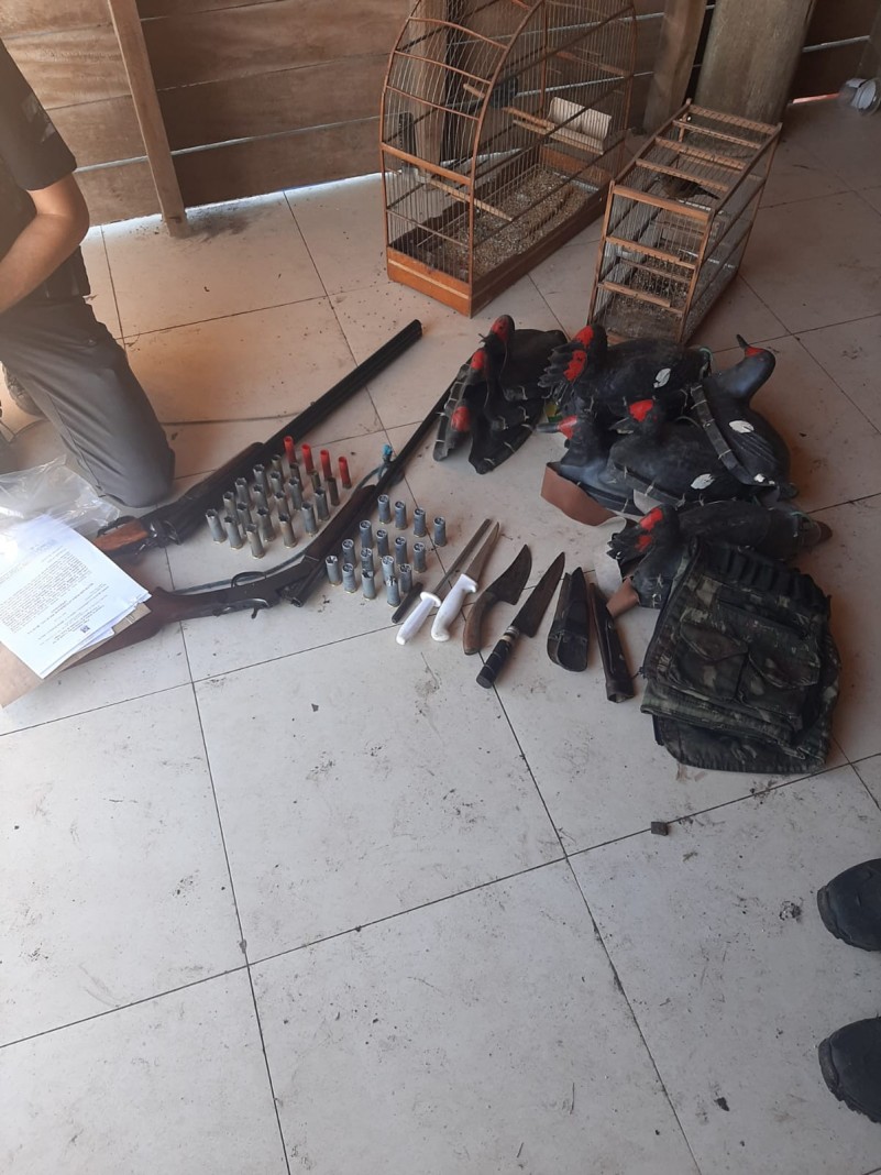 Foram apreendidos armamento e munições (quatro espingardas), fauna e caça predatória (dois pássaros silvestres sem anilhas de identificação, iscas e diversos apetrechos utilizados para a caça) e um automóvel.