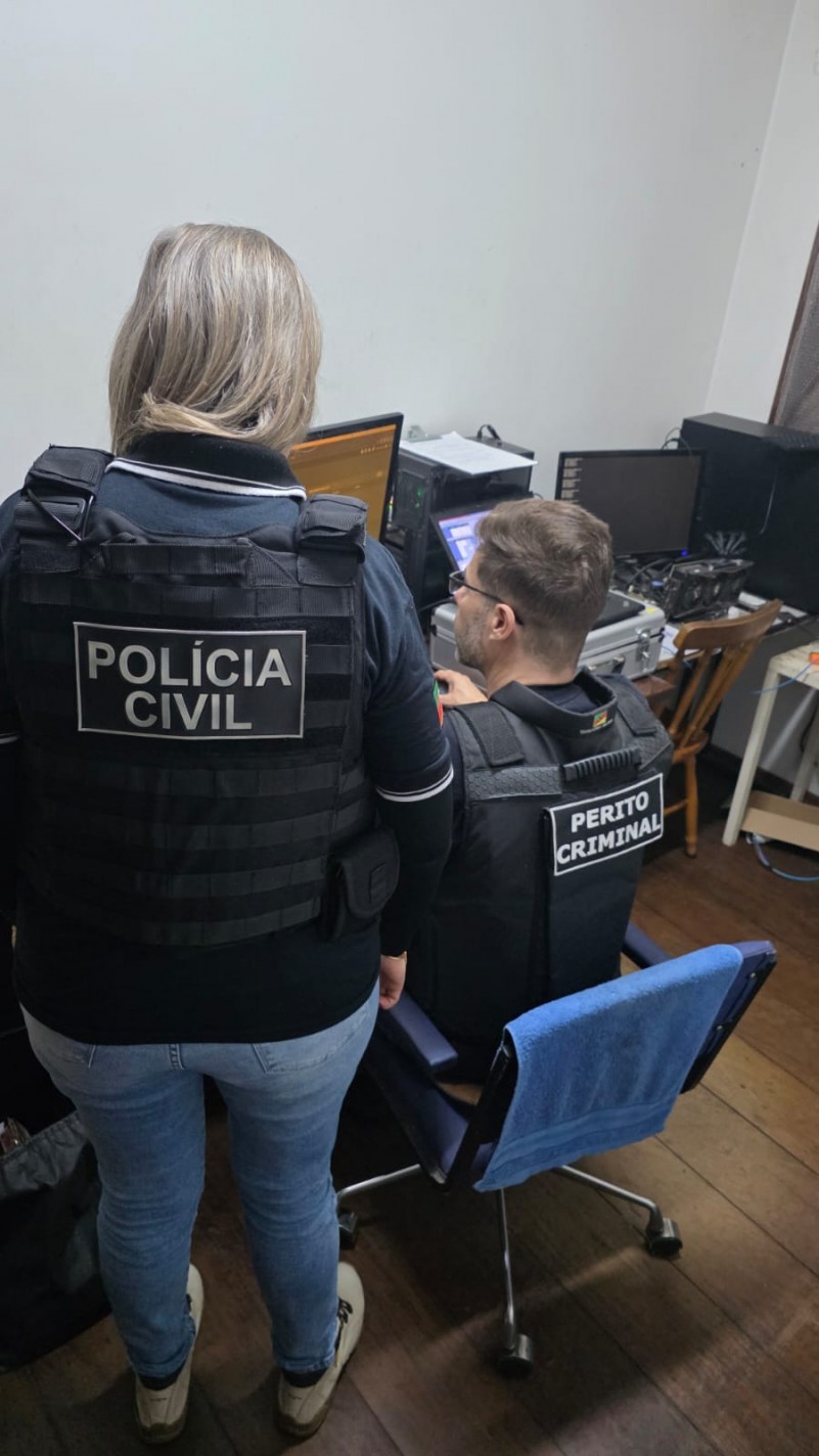 Em Novo Hamburgo, policiais civis da DECA, com apoio de policiais lotados no DPGV e na Deam de Novo Hamburgo, cumpriram mandado de busca e apreensão que resultou na prisão em flagrante de um homem de 40 anos, que foi autuado pelo crime de armazenamento de conteúdo de abuso sexual infantojuvenil. Peritos Criminais do IGP realizaram a análise preliminar dos dispositivos eletrônicos apreendidos, possibilitando a comprovação imediata da materialidade delitiva. O preso foi encaminhado à Delegacia de Polícia de Pronto Atendimento (DPPA) de Novo Hamburgo para formalização do flagrante e, posteriormente, ao sistema prisional.