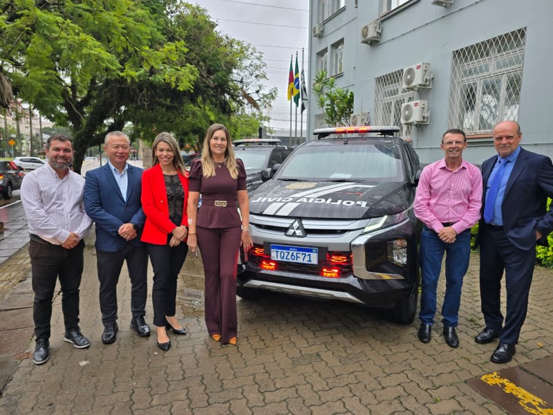 Na manhã desta terça-feira (24), ocorreu a solenidade de entrega de novas viaturas e armamentos à Polícia Civil. A cerimônia foi realizada no estacionamento do Palácio da Polícia, na capital, e contou com a presença de diversas autoridades, entre elas o Secretário da Segurança Pública do RS, Cel. Mario Ikeda; a Secretária-Adjunta da Segurança Pública do RS, Delegada Adriana Regina da Costa; a Deputada Estadual, Delegada Nadine Tagliari Farias Anflor; o Chefe de Polícia, Delegado Heraldo Chaves Guerreiro; a Subchefe de Polícia, Delegada Patrícia Tolotti Rodrigues.