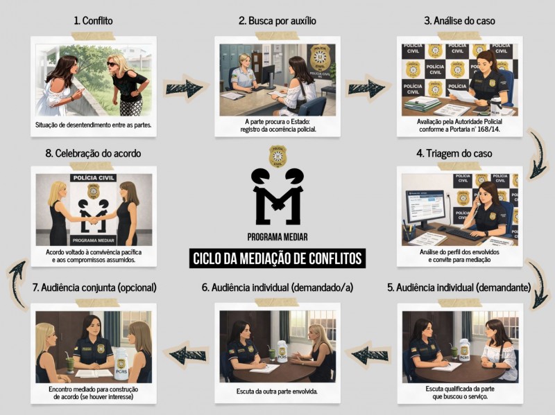 Encenação de uma mediação realizada pela Polícia Civil/RS