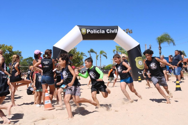 No sábado (07), a praia do Laranjal, em Pelotas, recebeu os minibuggies da Polícia Civil. As crianças se divertiram andando nas miniviaturas da instituição, em uma pista montada junto à Casa de Verão do Sesc. Durante o trajeto, eram passadas informações e dicas às crianças sobre sinalização e cuidados com o trânsito. A tradicional oficina de desenho também foi montada junto ao espaço.