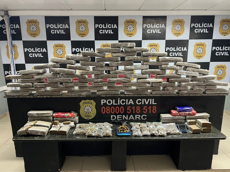 Durante a ação policial, foram apreendidos aproximadamente 60 kg de maconha prensada, distribuídos em diversos tijolos, além de cerca de 1 kg de skunk (flor de maconha com maior concentração de THC e elevado valor comercial). Também foi apreendido um simulacro de pistola que se encontrava no imóvel.