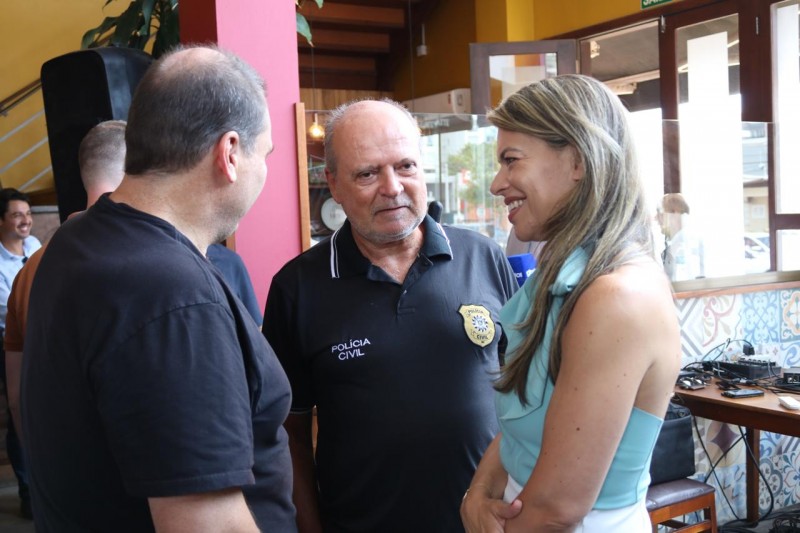 O evento também foi prestigiado com a presença da Subchefe de Polícia, Delegada Patrícia Tolotti Rodrigues; do Diretor do Departamento de Polícia do Interior, Delegado Cléber Lima; da Diretora da 23ª Delegacia de Polícia Regional do Interior, Delegada Sabrina Deffente; da Diretora do Gabinete de Relações Institucionais e Comunicação Social, Delegada Eliana Lopes; demais autoridades, empresários e convidados.