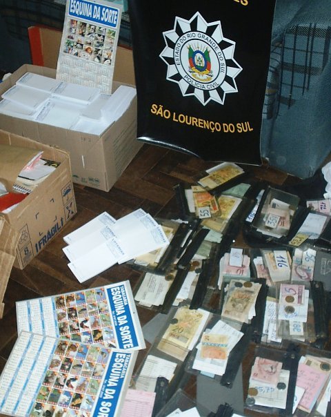 Na tarde do dia 30 de agosto, quatro equipes da Delegacia de Polícia de São Lourenço do Sul, sob o comando do Delegado Guilherme Calderipe, realizaram o cumprimento de mandados de busca e apreensão em estabelecimentos comerciais envolvidos com o jogo do bicho. Após trabalho de investigação e apoio do Poder Judiciário, diversos locais foram apurados como sendo pontos de coleta das apostas, sendo um deles a sede dos principais responsáveis. Com as buscas, uma série de materiais e documentos relacionados ao jogo foi apreendida. Houve também a apreensão de uma motocicleta e de quantia em dinheiro superior a R$ 2.450,00, quantia esta armazenada em uma única bolsa. Procedimento policial foi instaurado e cinco pessoas já foram ouvidas. A loteria conhecida como jogo do bicho está tipificada na Lei das Contravenções Penais e geralmente guarda relação com outros delitos, como a exploração de máquinas caça-níqueis.DP
