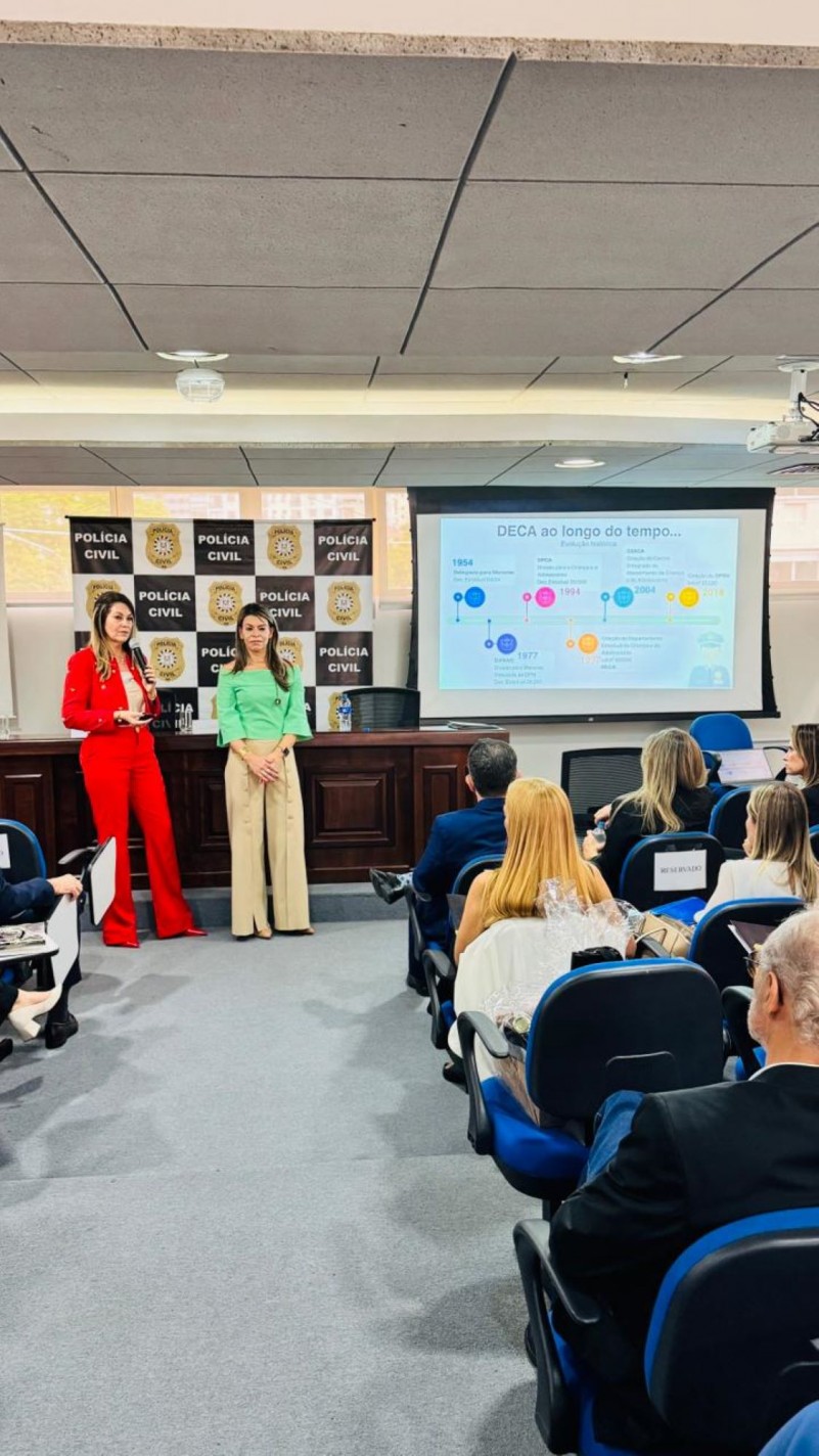 O encontro contou com a presença de importantes autoridades e lideranças da Instituição, entre elas a Secretária-Adjunta da Segurança Pública, Delegada Adriana Regina da Costa; o Chefe de Polícia, Delegado Heraldo Chaves Guerreiro; a Subchefe de Polícia, Delegada Patrícia Tolotti; o Diretor do DPGV, Delegado Juliano Brasil Ferreira; e o Diretor da DECA/DPGV, Delegado André Ciardullo Mocciaro, reforçando o compromisso institucional com o aprimoramento contínuo das ações voltadas à proteção de grupos vulneráveis.
