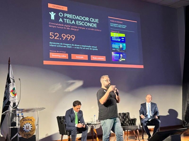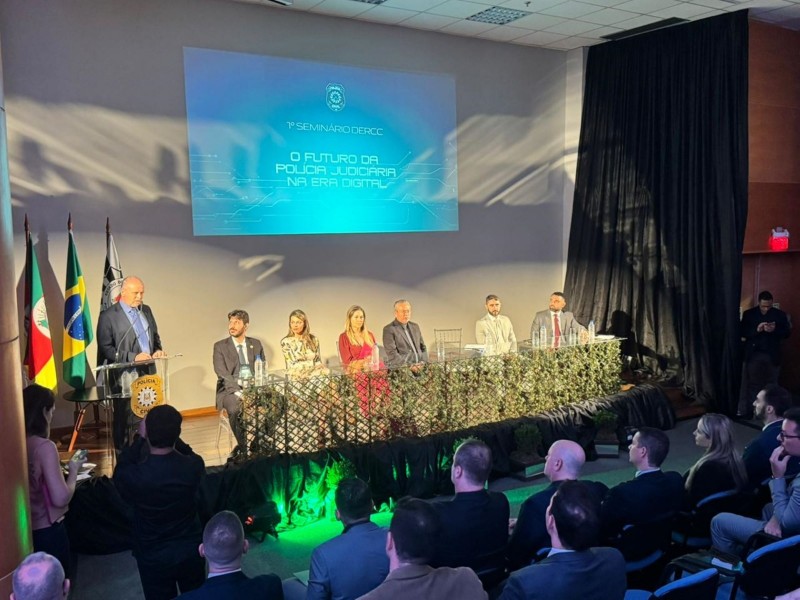 O Departamento Estadual de Repressão aos Crimes Cibernéticos (DERCC) realizou, nesta quinta-feira (09/04), na Pontifícia Universidade Católica do Rio Grande do Sul (PUCRS), em Porto Alegre, o seu primeiro seminário. Com o tema “O futuro da polícia judiciária na era digital”, o evento marca o primeiro ano de atuação da unidade especializada e consolida o avanço institucional no enfrentamento à criminalidade digital.