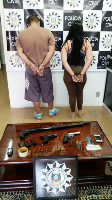 Na manhã desta terça-feira (24), por volta das 11h, policiais civis da 1ª DP de Bento Gonçalves, com o apoio de agentes da 2ª DP e DEAM (Bento Gonçalves), Defrec e 1ª DP (Caxias do Sul), cumpriram dois mandados de busca e apreensão no Bairro Municipal. Em uma residência, uma mulher foi presa com cartuchos de calibre .38. Pagou fiança e foi liberada. Já na segunda moradia (alvo da ação), um foragido e uma mulher foram presos com uma espingarda Pump calibre .12 municiada; um revólver .38 desmuniciado (furtado); uma pistola Taurus calibre .380mm municiada; além de outro carregador municiado de calibre .380mm e um carregador de pistola .40 (restrito às forças policiais). Segundo a delegada Maria Isabel Zerman Machado, após a lavratura do auto de prisão em flagrante, os presos serão encaminhados ao presídio local.