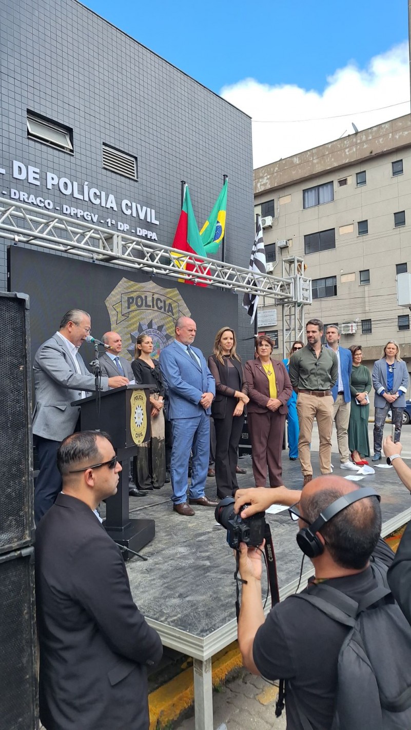 O evento contou com a presença de diversas autoridades, entre elas o Governador do Estado, Eduardo Leite; o Secretário Adjunto da Segurança Pública, Mário Ikeda; o Chefe de Polícia, Delegado Heraldo Chaves Guerreiro; a Subchefe de Polícia, Delegada Adriana Regina da Costa; o Diretor do Departamento de Polícia do Interior, Cleber dos Santos Lima; a Delegada Regional da 7ªDPRI de Ri Grande, Lígia Marques Furlanetto; a Deputada Estadual Delegada Nadine Anflor, representando a presidência da Assembleia Legislativa; a Prefeita de Rio Grande, Sr. Darlene Pereira.