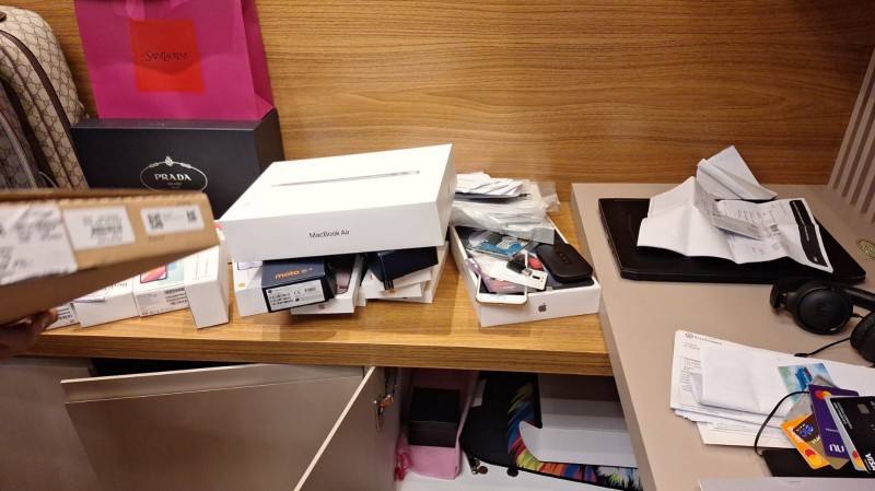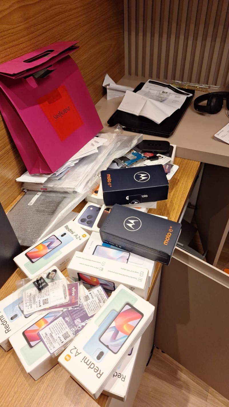 No local, foram apreendidos diversos dispositivos eletrônicos, incluindo computador de alto desempenho e aparelhos celulares que serviam como "central de interação digital" para a aplicação dos golpes. Além do material probatório, a Polícia Civil efetuou a apreensão de dois veículos, um VW/T-Cross e um Toyota/Corolla, bens avaliados em aproximadamente R$ 350 mil, que denotam o vultoso proveito econômico obtido com a prática ilícita.