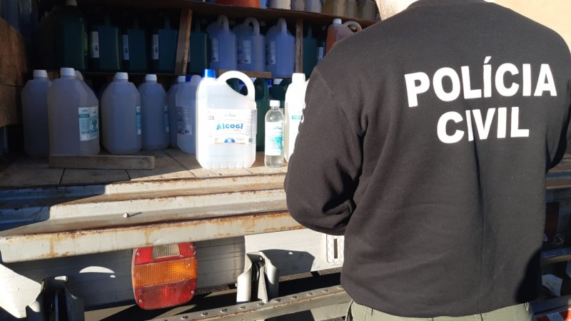 Polícia Civil apreende álcool gel e álcool líquido para serem reavaliados pela Vigilância Sanitária e pelo LACEN