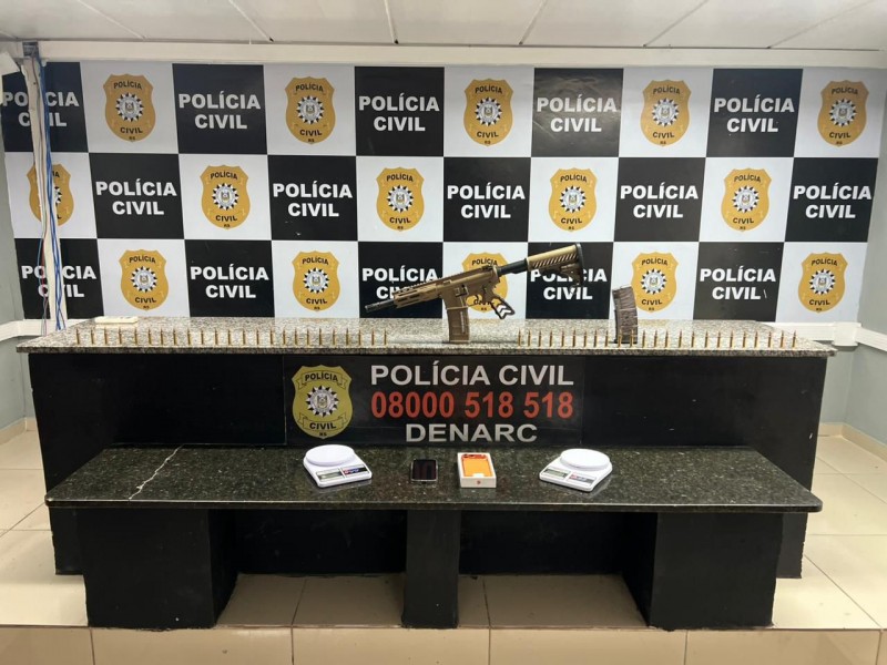 Além da apreensão de um fuzil calibre 5.56mm, sem numeração aparente, a ação ainda resultou na apreensão de 48 munições de calibre 5.56mm, dois carregadores de calibre 5.56mm, um veículo, dois celulares e duas balanças de precisão.
