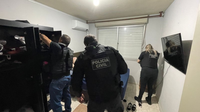 O fato investigado era uma extorsão, praticada com o modo de agir já citado. Foram cumpridos mandados de busca em dois locais distintos na capital gaúcha. Um deles, no sistema prisional em Porto Alegre, medida executada pela Polícia Penal, e outro no bairro Mário Quintana, em um apartamento em condomínio na Avenida Protásio Alves.