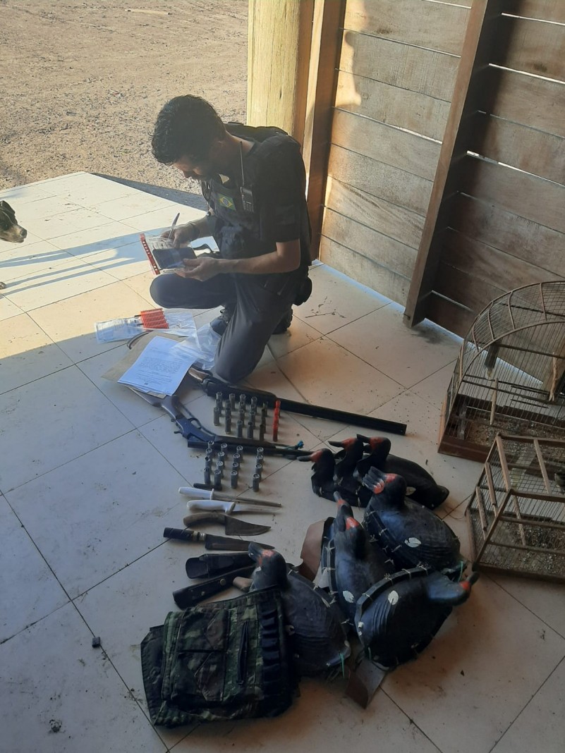 Foram apreendidos armamento e munições (quatro espingardas), fauna e caça predatória (dois pássaros silvestres sem anilhas de identificação, iscas e diversos apetrechos utilizados para a caça) e um automóvel.