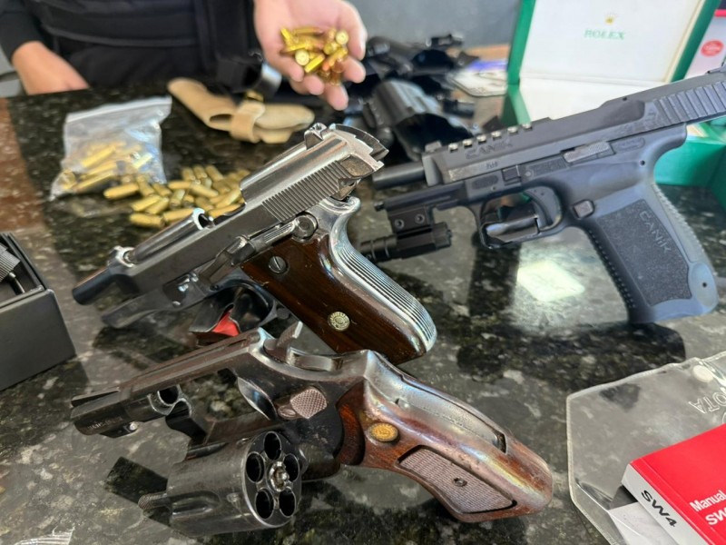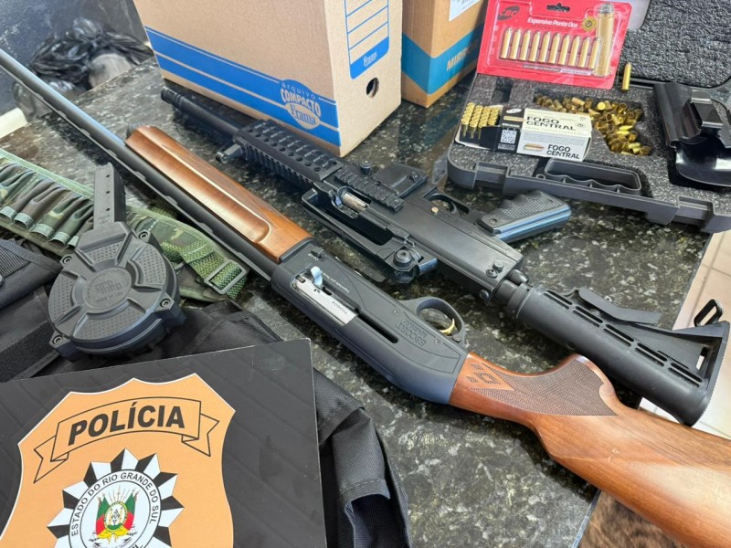 Um investigado foi preso em flagrante, em Terra de Areia, por porte ilegal de arma de fogo de uso restrito. Imóveis localizados em Canela e ligados ao investigado, como uma revenda de veículos e residências, também foram alvos de busca. Foram apreendidas seis armas de fogo, sendo pistolas, armas longas e revólveres de calibre .38, 380, 12 e 9mm, inclusive sem numeração e adaptadas ilegalmente, além de vasta quantidade de munição e equipamentos bélicos como mira laser e carregadores.