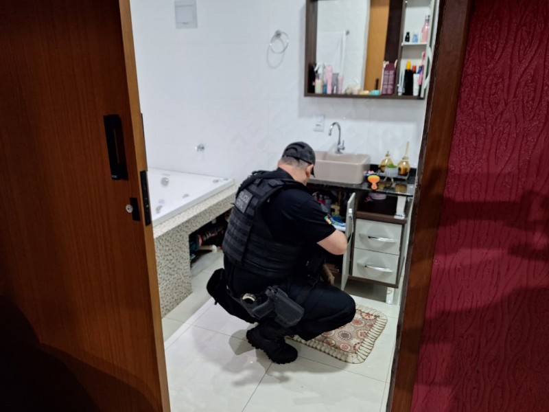 Em decorrência da continuidade das investigações, no dia 27/06/2024, foram cumpridos 86 mandados de prisão e 147 mandados de busca e apreensão. Durante o cumprimento das medidas, uma residência localizada na cidade de Lajeado do Bugre, identificada como ponto de armazenamento e circulação de valores e substâncias ilícitas, foi alvo de diligência policial. No local, os policiais foram recebidos com disparos de arma de fogo, circunstância que reforçou o alto potencial ofensivo e a periculosidade da estrutura investigada. Na ocasião, houve a prisão em flagrante do indivíduo responsável pelos disparos, bem como a apreensão de armamentos e munições, confirmando o uso de estrutura armada para resguardar o funcionamento da atividade criminosa.