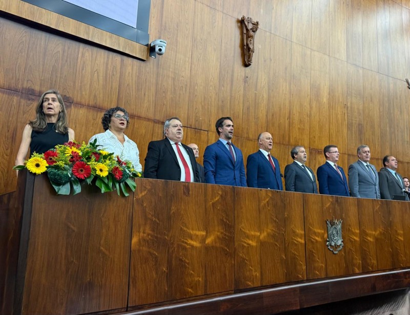 A Polícia Civil participou nesta terça-feira (03/02) da cerimônia de posse da nova mesa diretora da Assembleia Legislativa do Estado no Palácio Farroupilha. A delegada Cristiane Becker, Diretora da Divisão de Comunicação Social da Polícia Civil, esteve presente representando a instituição. O deputado Sérgio Peres assumiu a presidência para a gestão 2026-2027 (até 31/01/2027).