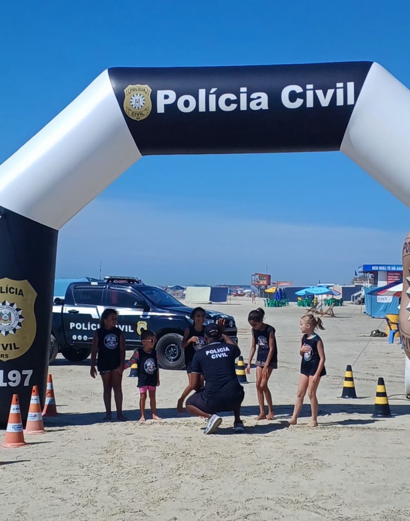 Nesta semana, a Polícia Civil deu continuidade às atividades da Operação Verão Total, no litoral do estado. Na última quinta-feira (12), a equipe multidisciplinar coordenada pelo Gabinete de Relações Institucionais e Comunicação Social (Grics), realizou uma minirrústica infantil na areia da praia, em Xangri-lá. As crianças e os adolescentes foram organizadas em grupos por sexo, idade e tamanho. Após um aquecimento inicial e algumas brincadeiras, elas correram nas diversas baterias no circuito montado na areia. Camisetas e medalhas foram distribuídas para os pequenos.