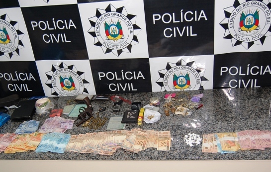 No Bairro Harmonia, foi preso um casal, um homem de 40 e uma mulher de 36 anos. Em sua residência foram apreendidas uma motocicleta, um veículo FIAT/Strada, cerca de R$ 15.000,00, uma bucha de cocaína, documentos diversos, um revólver calibre .38 com munições , celulares e um netbook.
