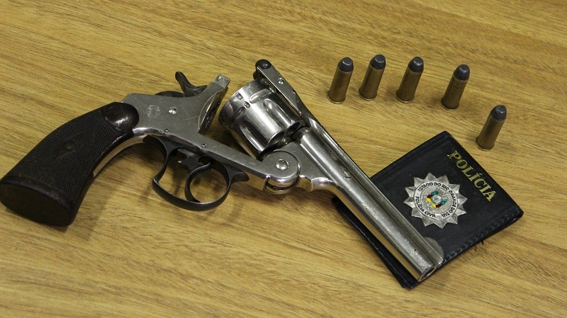 Um homem foi preso em flagrante por porte ilegal de arma de uso restrito, com um revolver calibre .44, e foi encaminhado à área judiciária na capital.